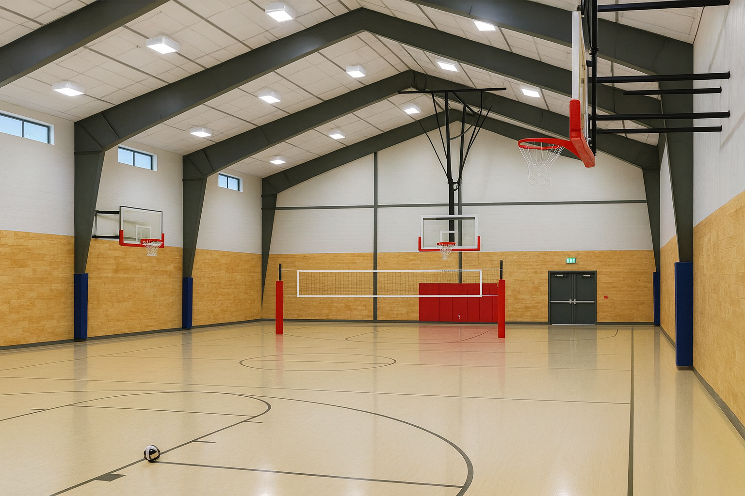 <p data-start="1783" data-end="1892"><strong data-start="1783" data-end="1801">Access & Flow:</strong> oversized doors for equipment, spectator seating, scoreboards, and PA/AV infrastructure.</p>
