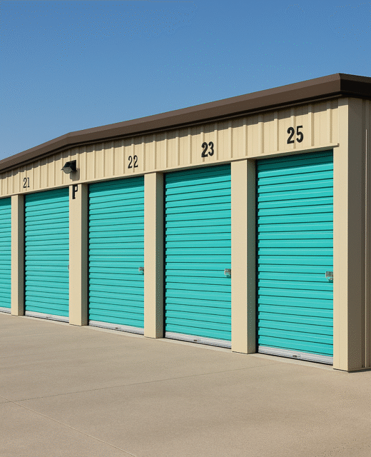 Full customization: roll-up or sectional doors, RV-height openings, windows, skylights, mezzanines, exterior finishes, gutters, insulation, and rough-ins for electrical and plumbing.